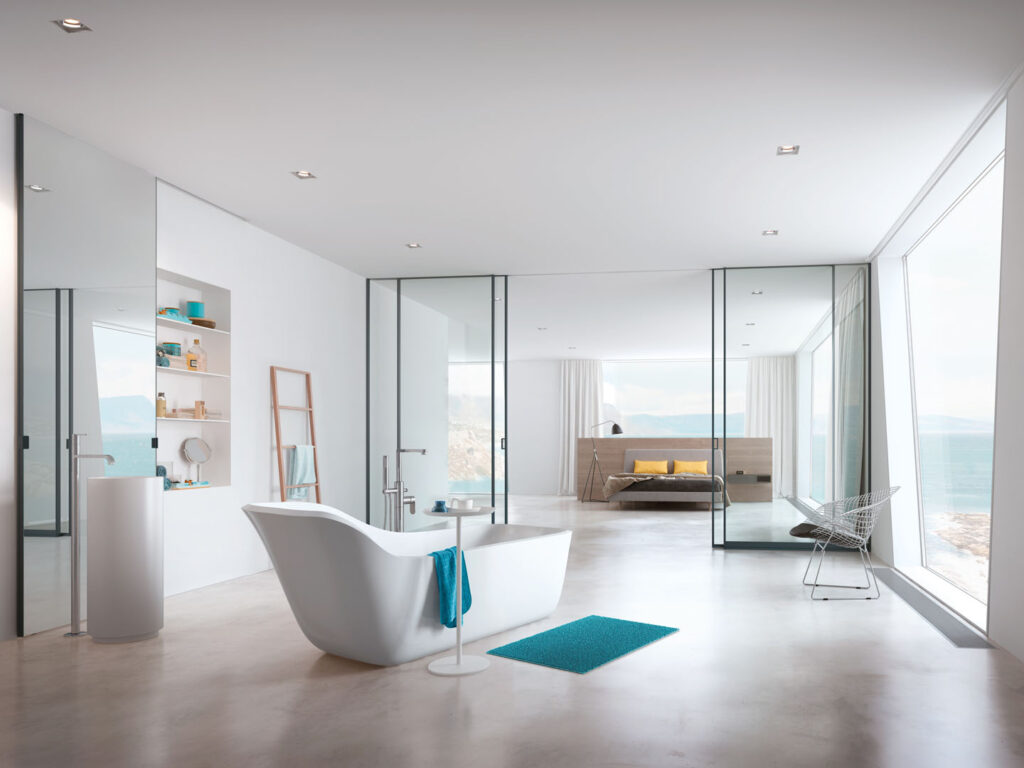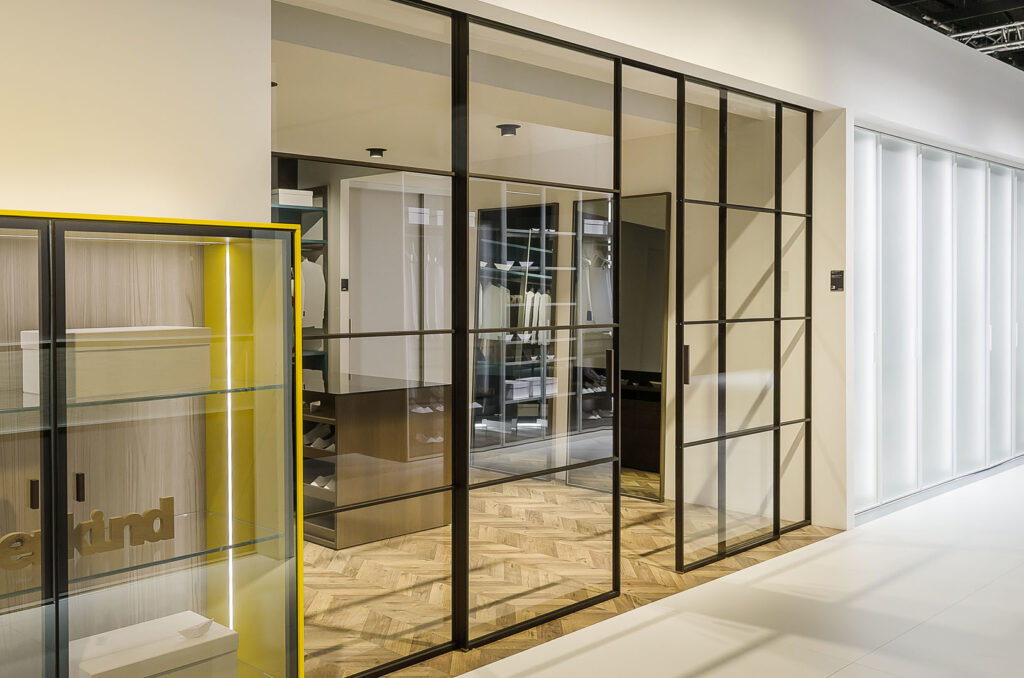 Univerzális fix keret, ami állhat önállóan térelválasztó elemként, de azonos keretprofiljai miatt kiválóan kombinálható az S1200 AIR-A függesztett tolóajtókkal is.